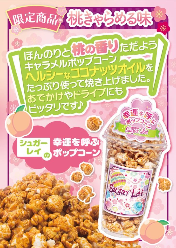 ほんのりと桃の香りただようキャラメルポップコーンです。