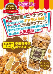 千葉県産のピーナッツをシュガーレイのキャラメル味にミックスしたご当地ポップコーン!