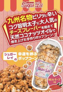 九州名物ピリッと辛いコク旨明太子に大人気のチーズフレーバーを絡めて天然ココナッツオイルで焼き上げた手作りポップコーン!