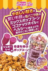 やさしい甘さの紫いも味と塩バニラ味のミックスポップコーン!
